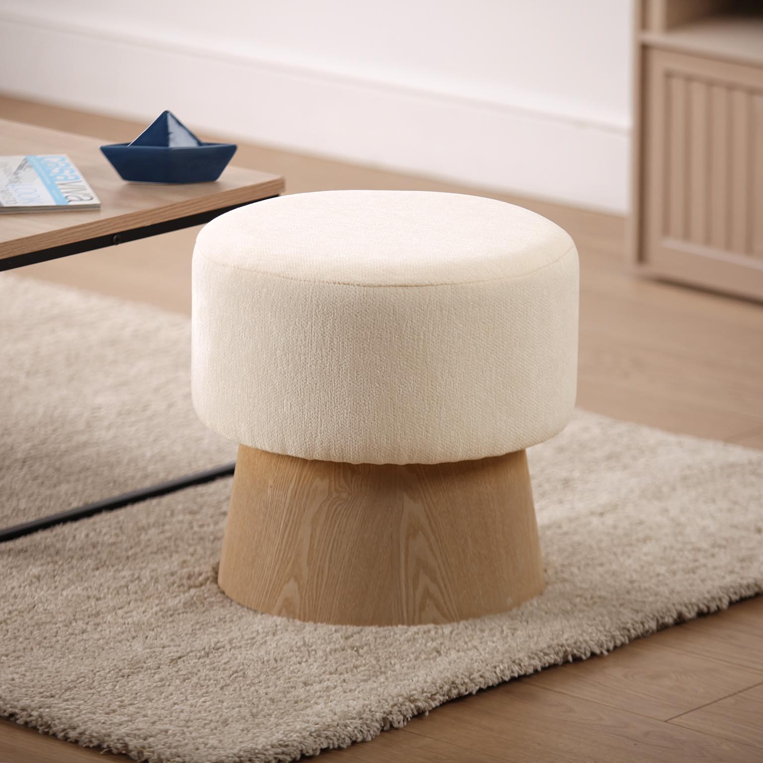La base in legno naturale conferisce un tocco di calore, rendendo questo puff un complemento ideale per ogni stile d'arredo.