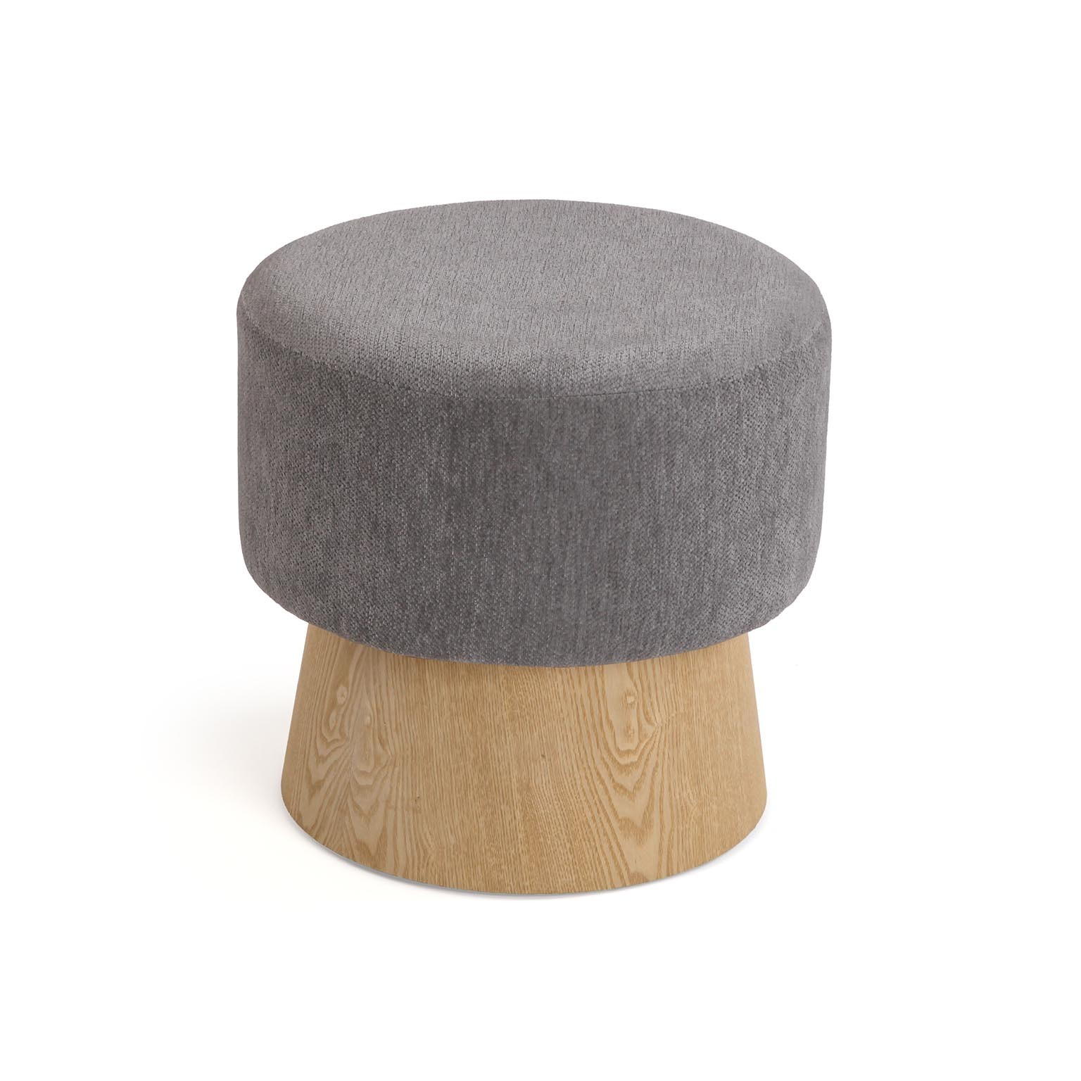 La finitura chiara della base in legno e il rivestimento grigio conferiscono un tocco di eleganza, rendendo questo puff un elemento pratico e stiloso per ogni ambiente.
