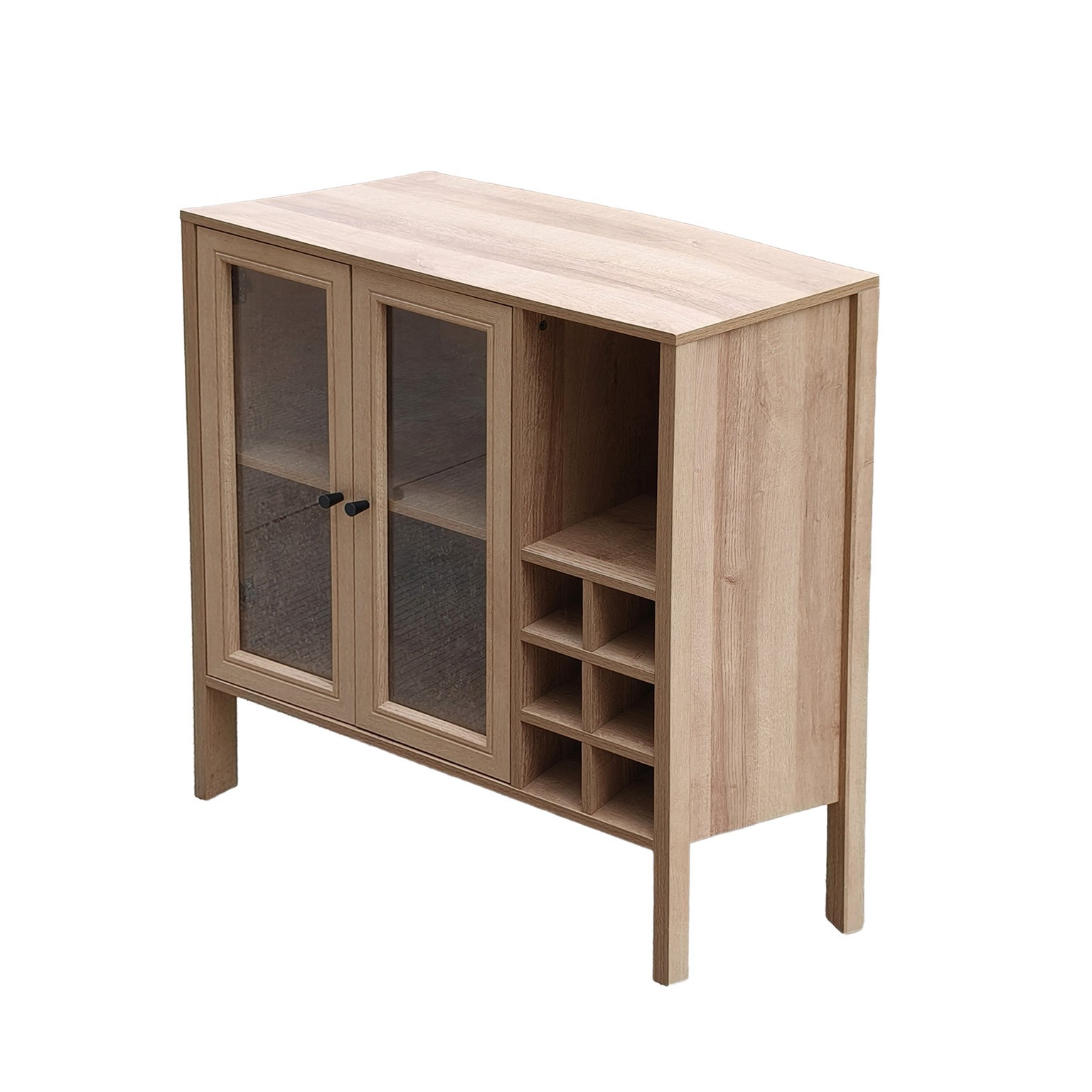La credenza Lyden 2 ante con portabottiglie rappresenta un complemento d'arredo funzionale e dal design moderno, ideale per ingressi e soggiorni.