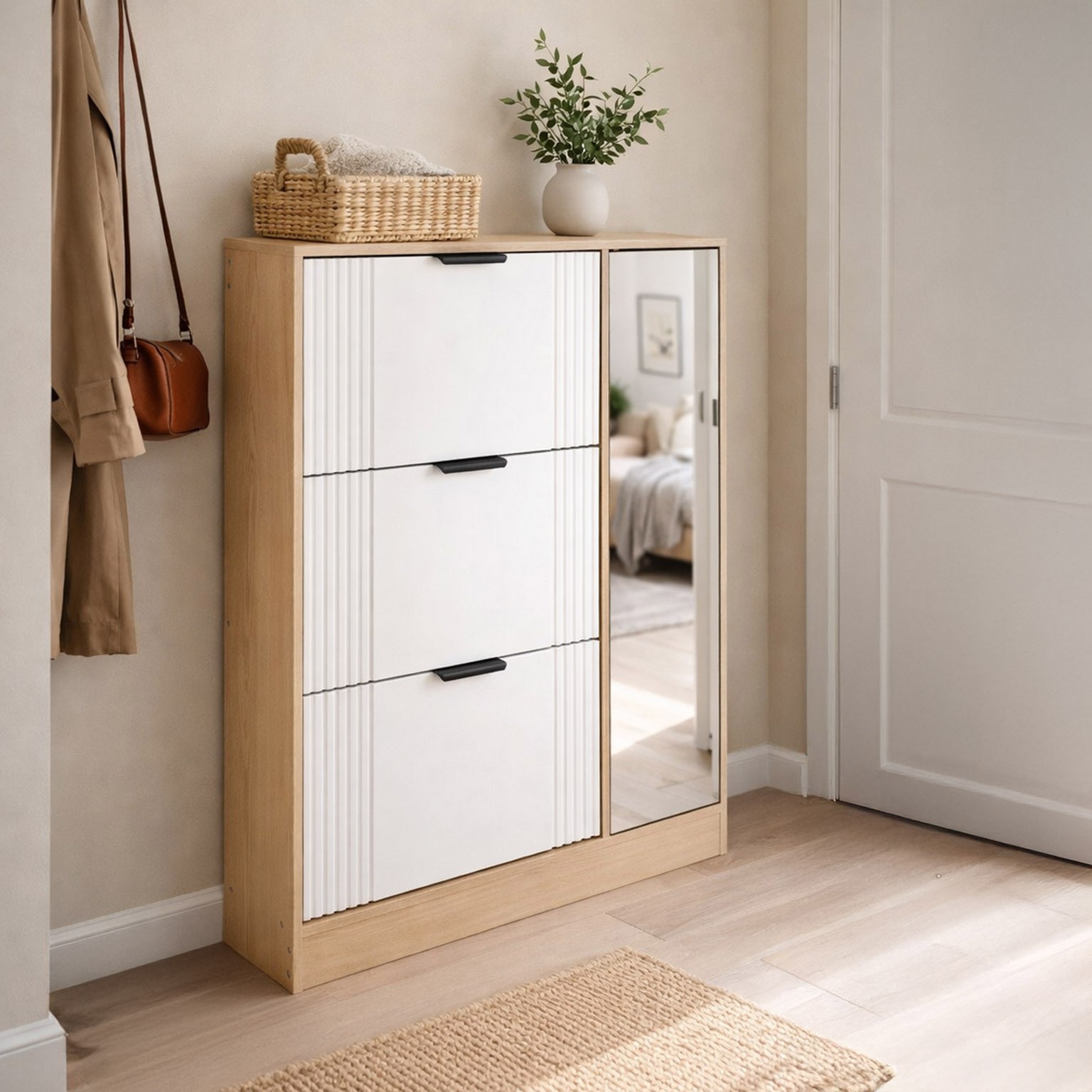 3 DOOR SHOE CABINET WITH STORAGE