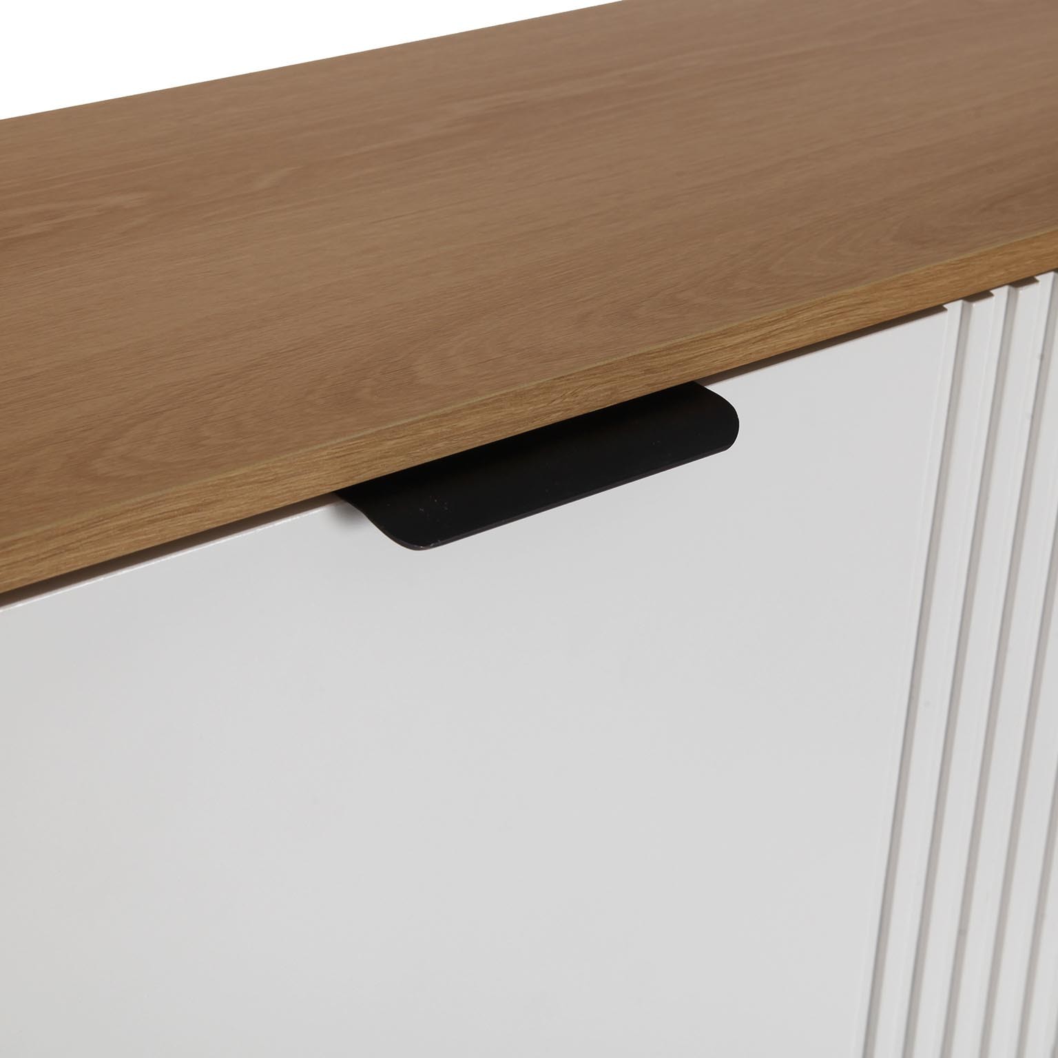 Realizzata in legno MDF e melamina, presenta una struttura compatta (90 cm di lunghezza, 23,5 cm di larghezza e 120 cm di altezza) che si adatta perfettamente a ingressi e corridoi.