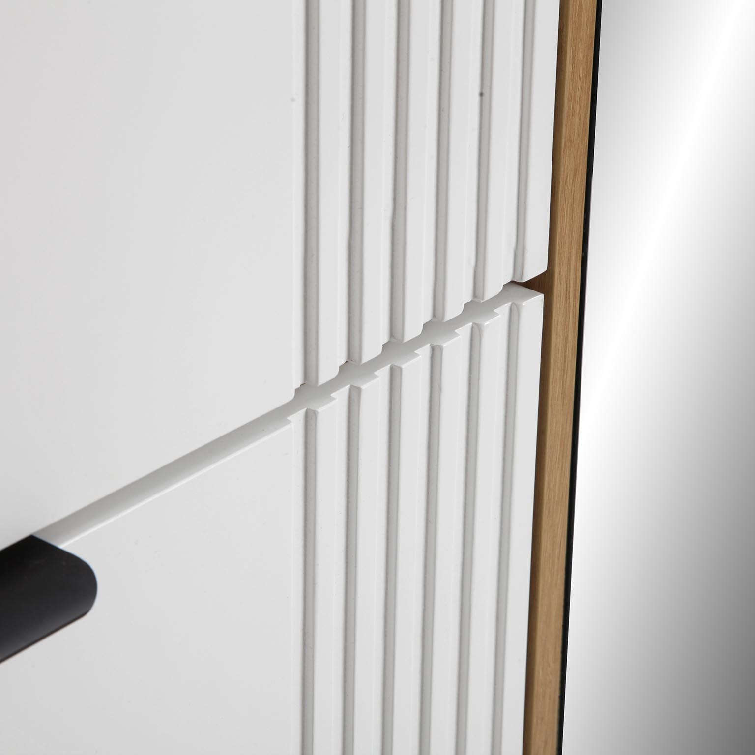 Il grande specchio frontale non solo offre praticità, ma amplia visivamente gli spazi, rendendola un elemento decorativo versatile.