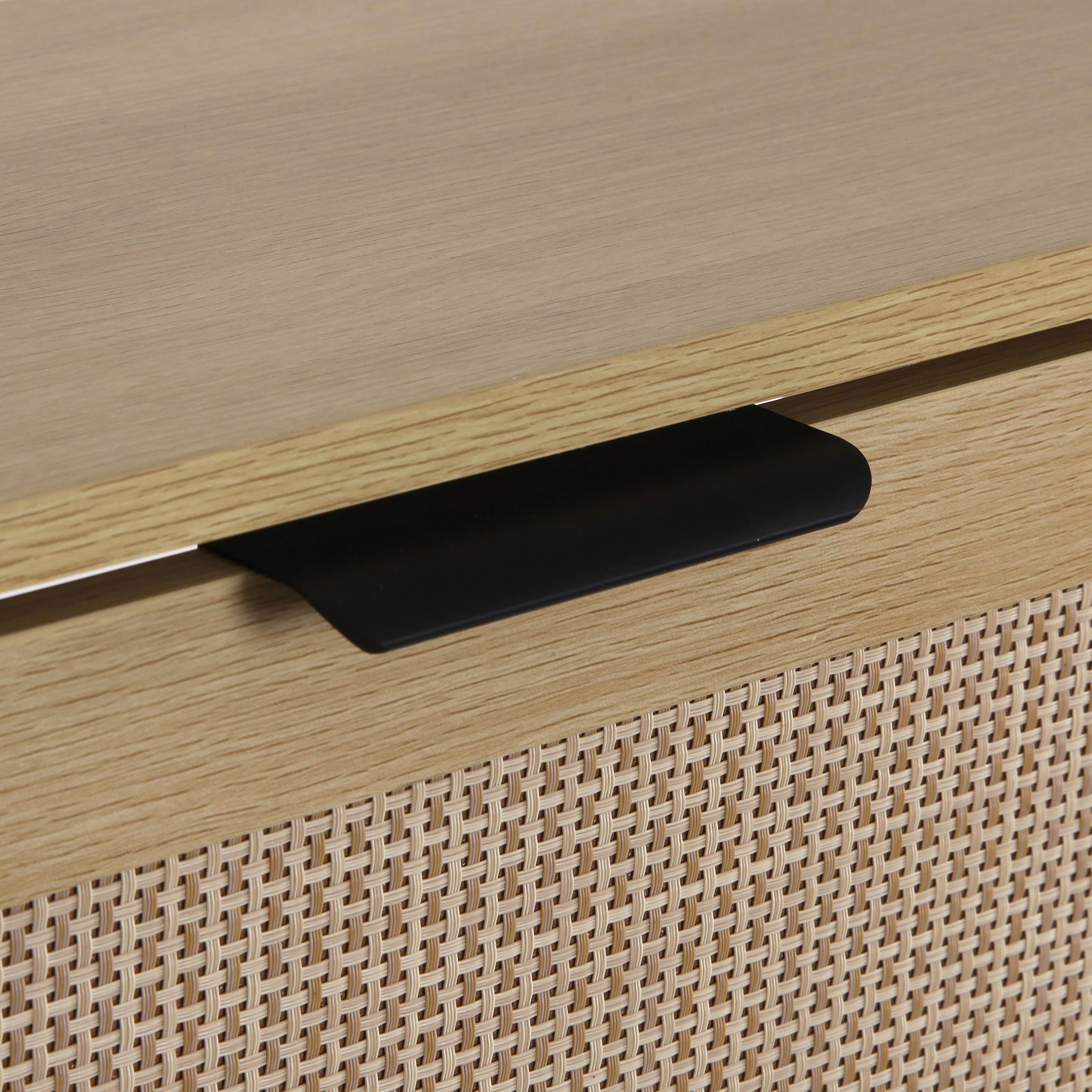 Realizzata in melanina e pannello di particelle, presenta un design moderno caratterizzato da linee pulite e tonalità neutre, come beige e legno chiaro.